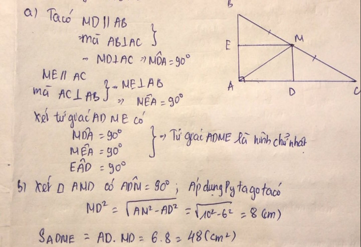 b, Cho AM là 10cm. AD=6cm. Tính diện tích tứ giác ADME