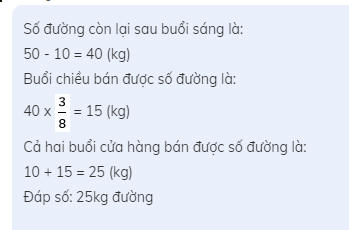 ⇒ Buổi chiều bán được: 40 = 1kg đường