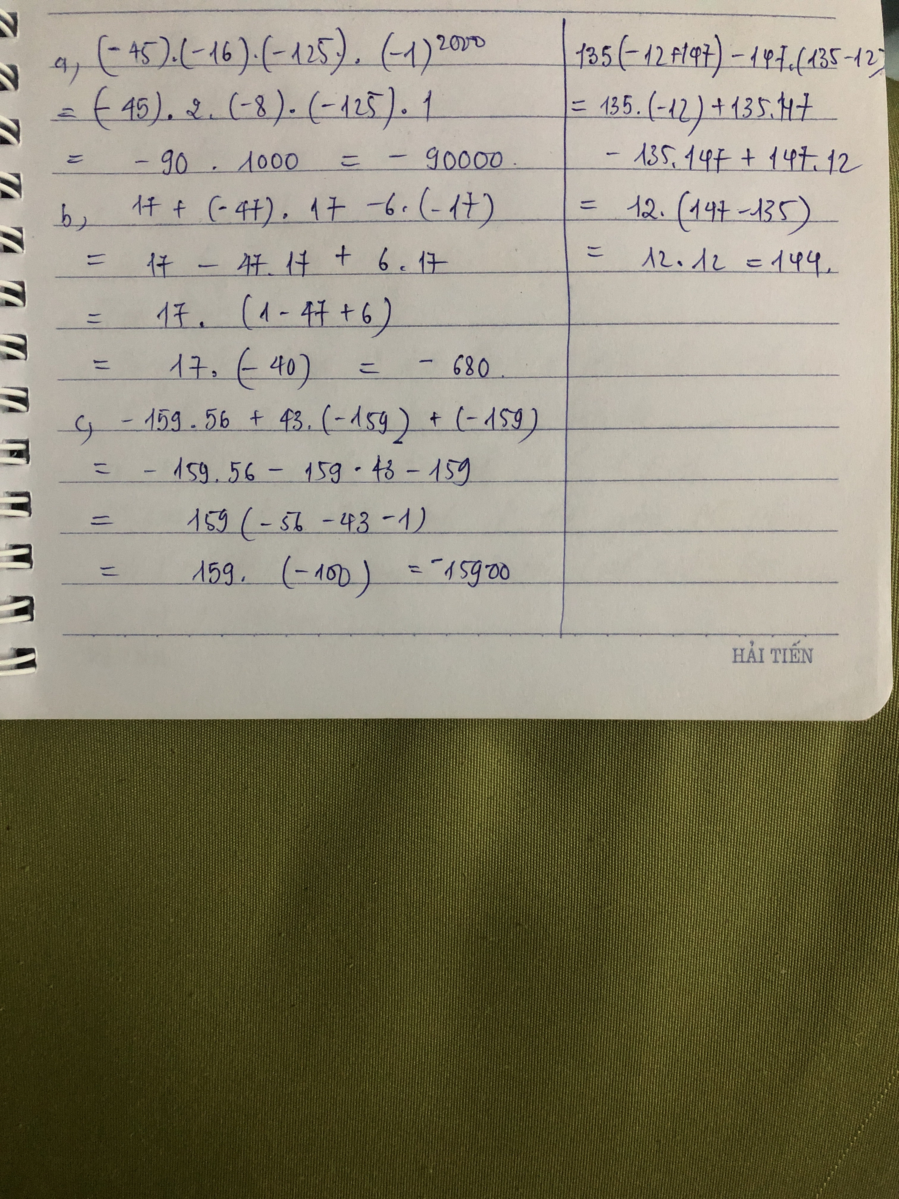 = 135 . (-12) + 135 . 147 - 147 . 135 - 147 . (-12)