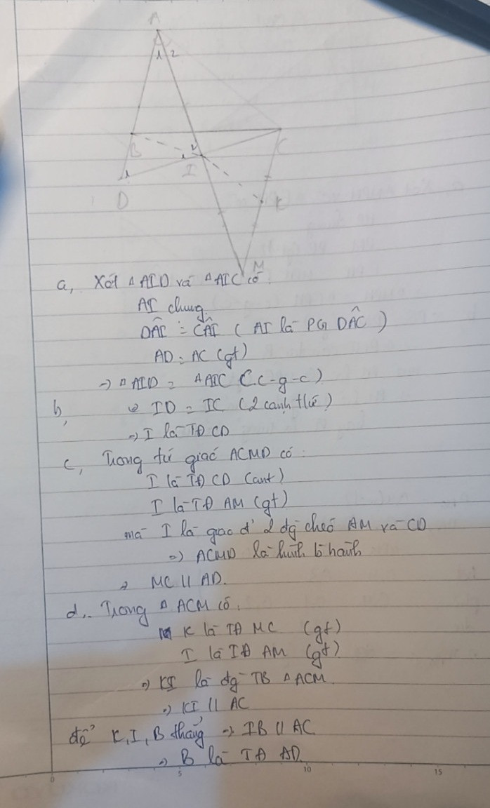c. Lấy điểm M trên tia AI sao cho I là trung điểm của AM. Chứng minh: MC//AD.